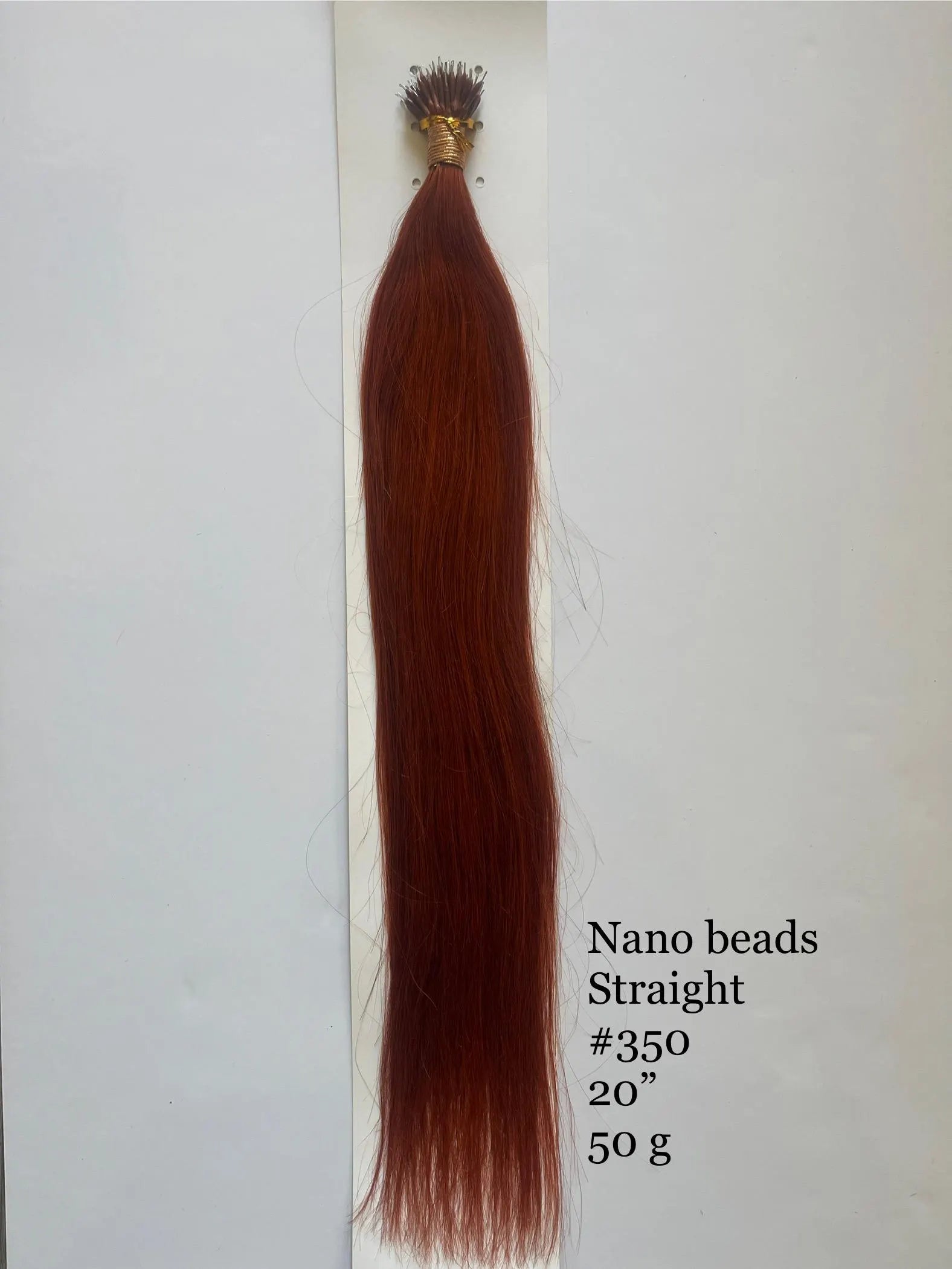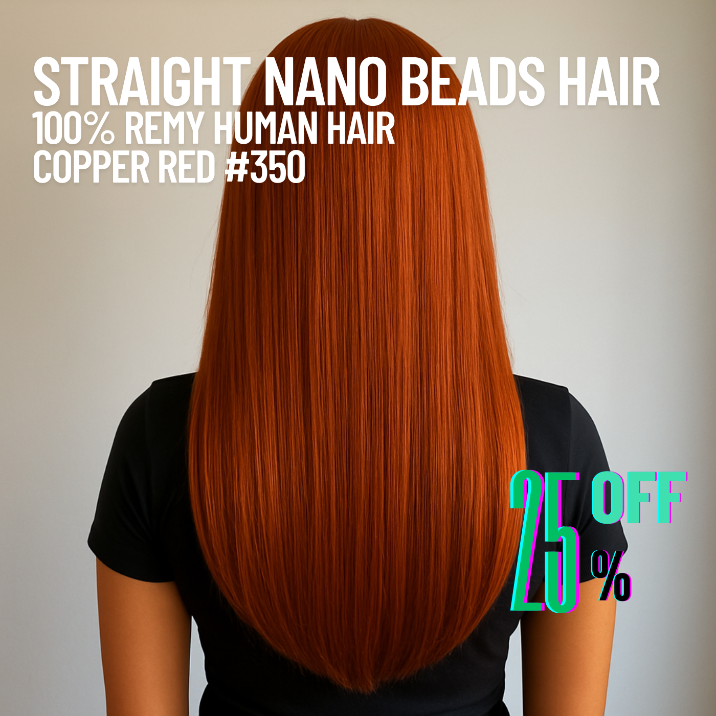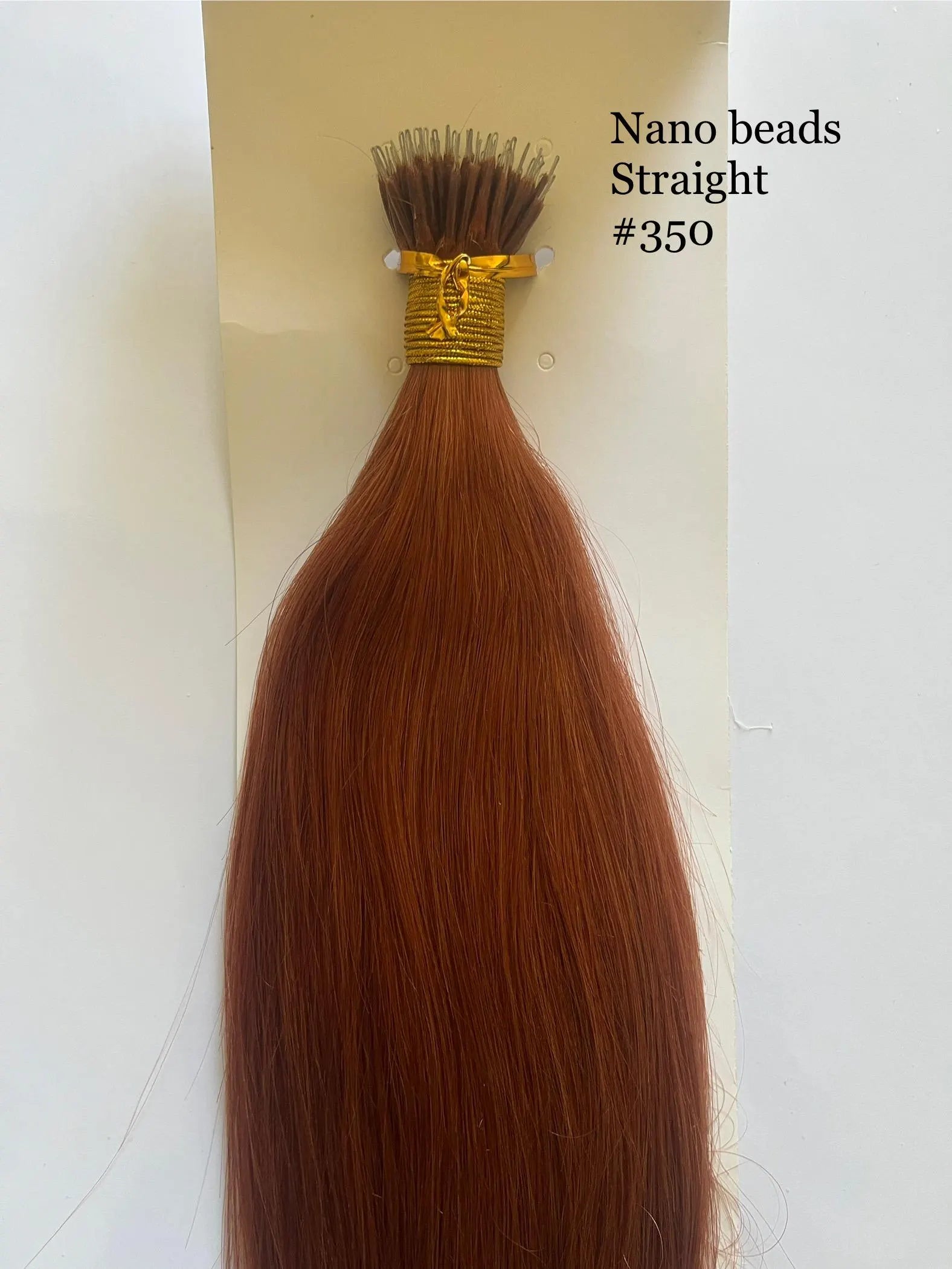 Extensions de cheveux en nano-perles rouge cuivré #350 – 100 % cheveux humains Remy