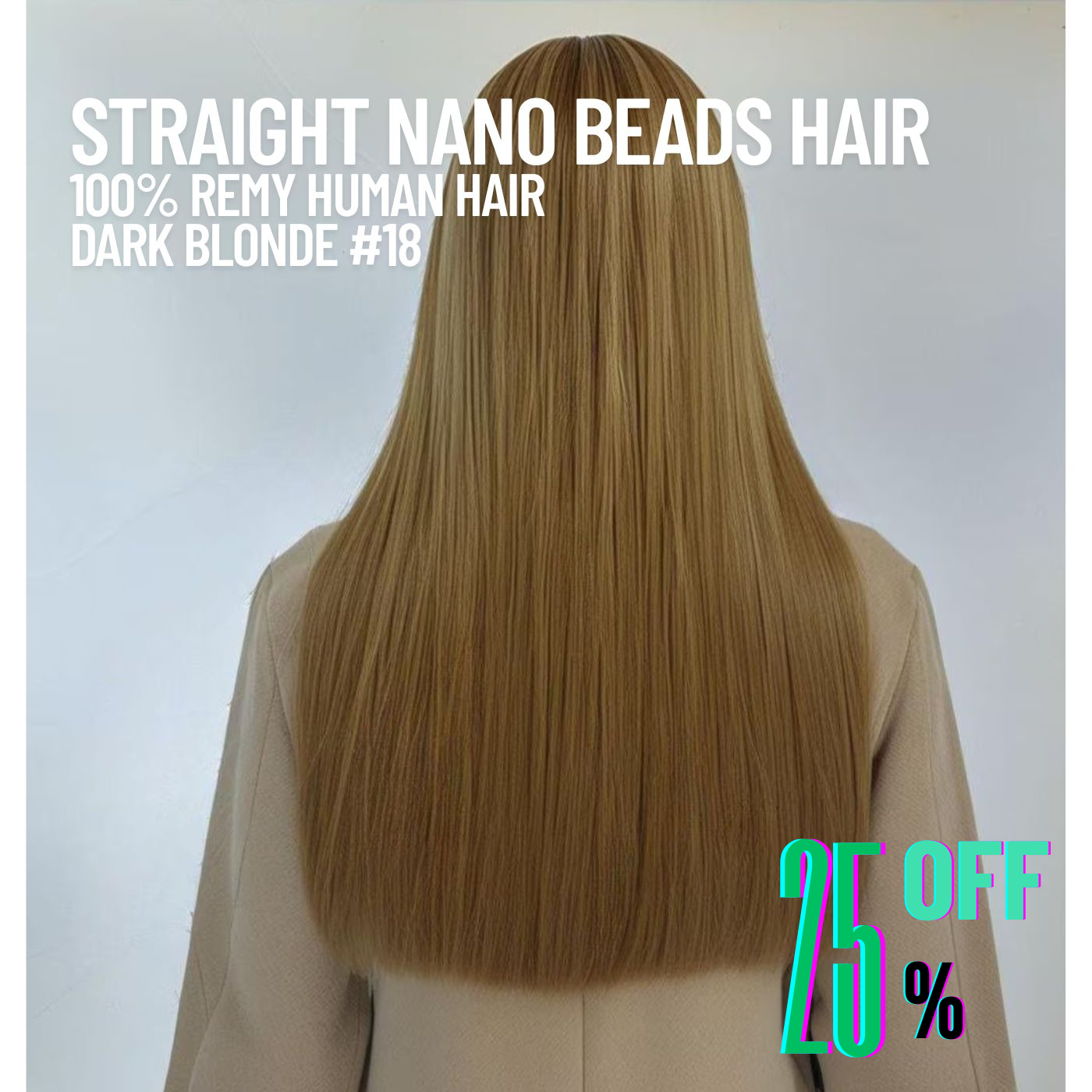 Extensions de cheveux en nano-perles blond foncé n° 18 – 100 % cheveux humains Remy | Paquet de 50 g (50 mèches) | Réutilisables | Expédié depuis le Canada