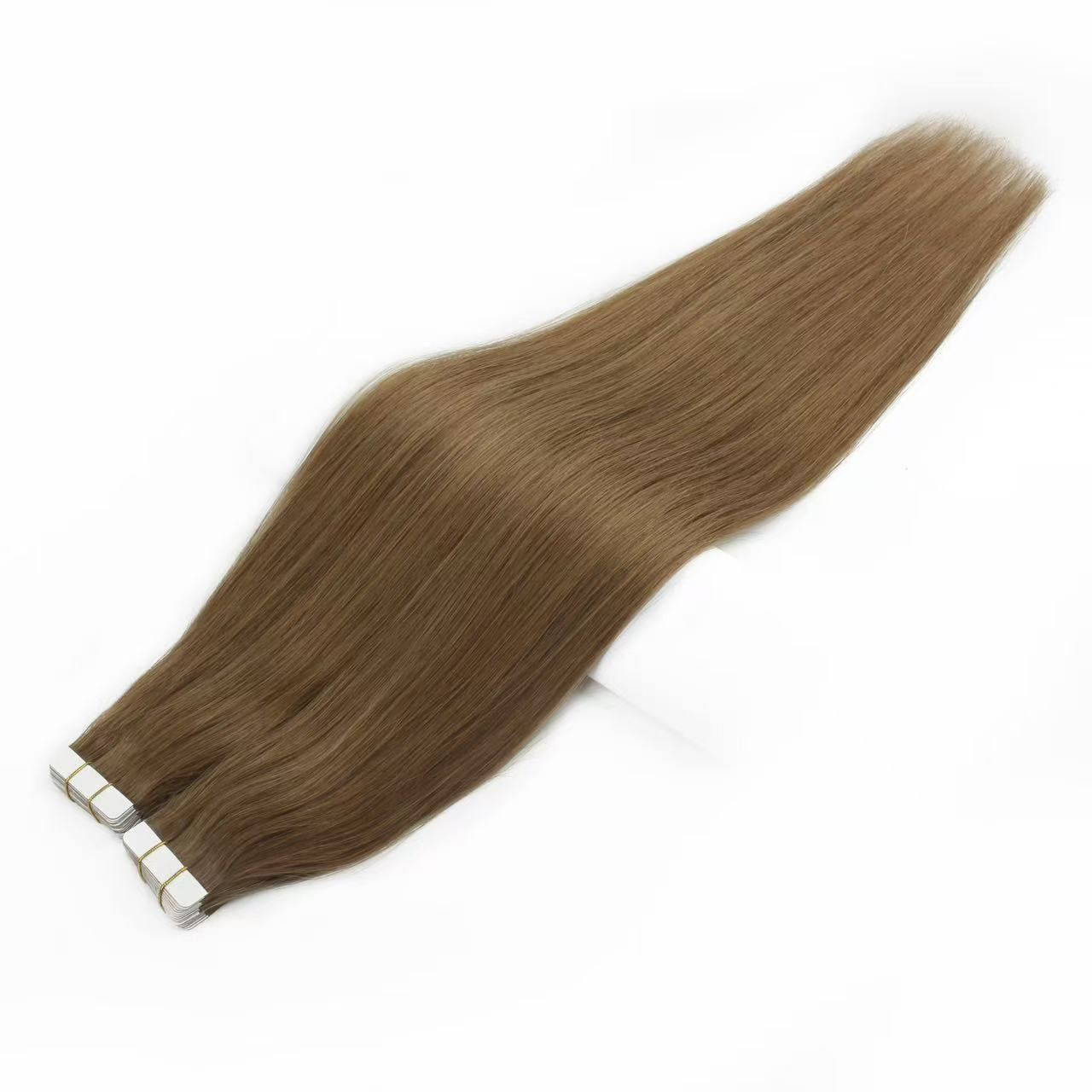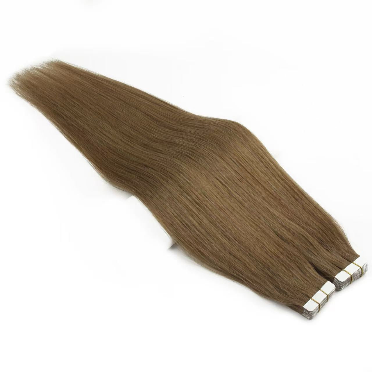 Extensions de cheveux adhésives châtain n° 6 – 100 % cheveux humains Remy | Paquet de 50 g | 25,4 à 76,2 cm | Réutilisables | Expédié depuis le Canada