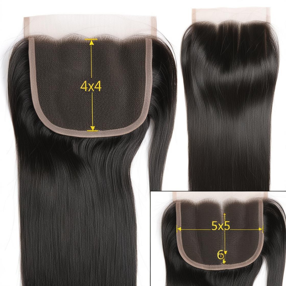 Natural Black #1B Straight Lace Closure – 4x4 | 5x5 | 6x6 Transparent Lace | 100% Remy Human Hair | 10''–30'' | Freestyle Parting | Ships from Canada
