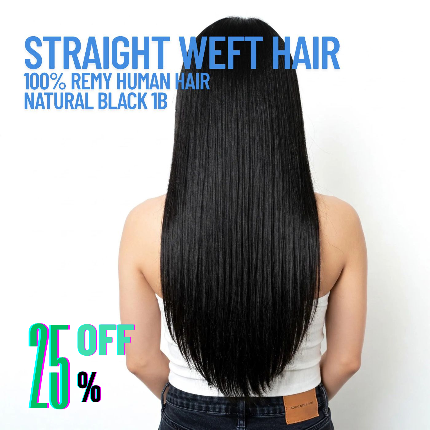 Extensions de cheveux trames noires naturelles n° 1B – 100 % cheveux humains Remy | Paquet de 100 g | 10 à 30 pouces | Réutilisables | Expédié depuis le Canada