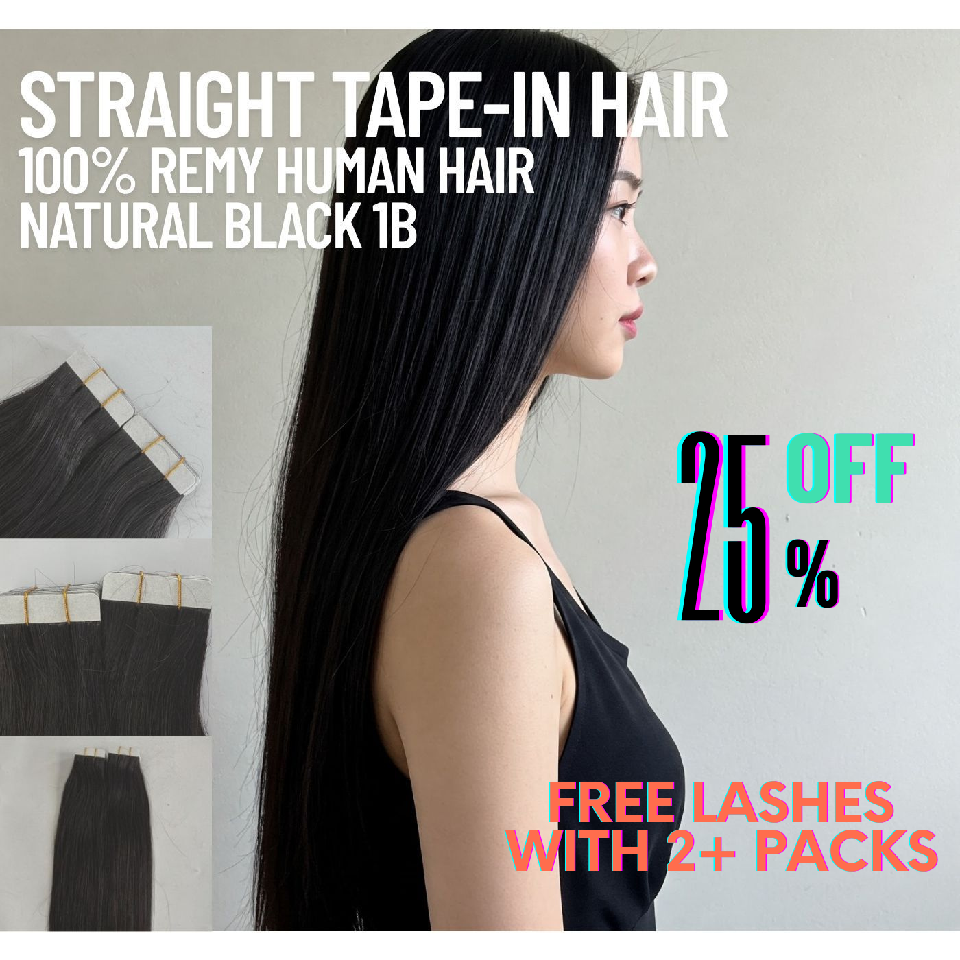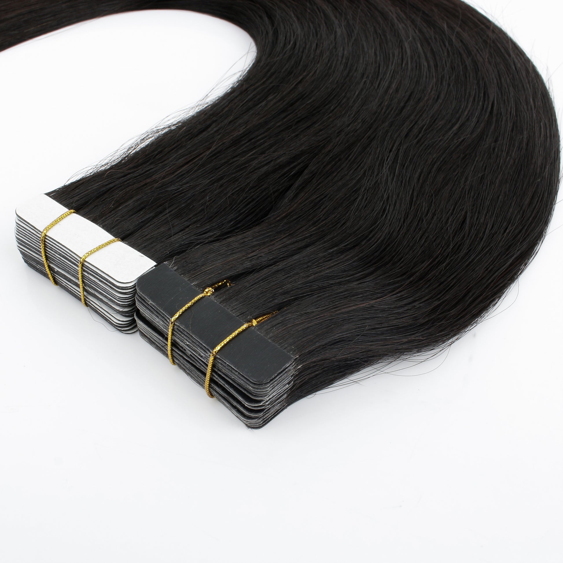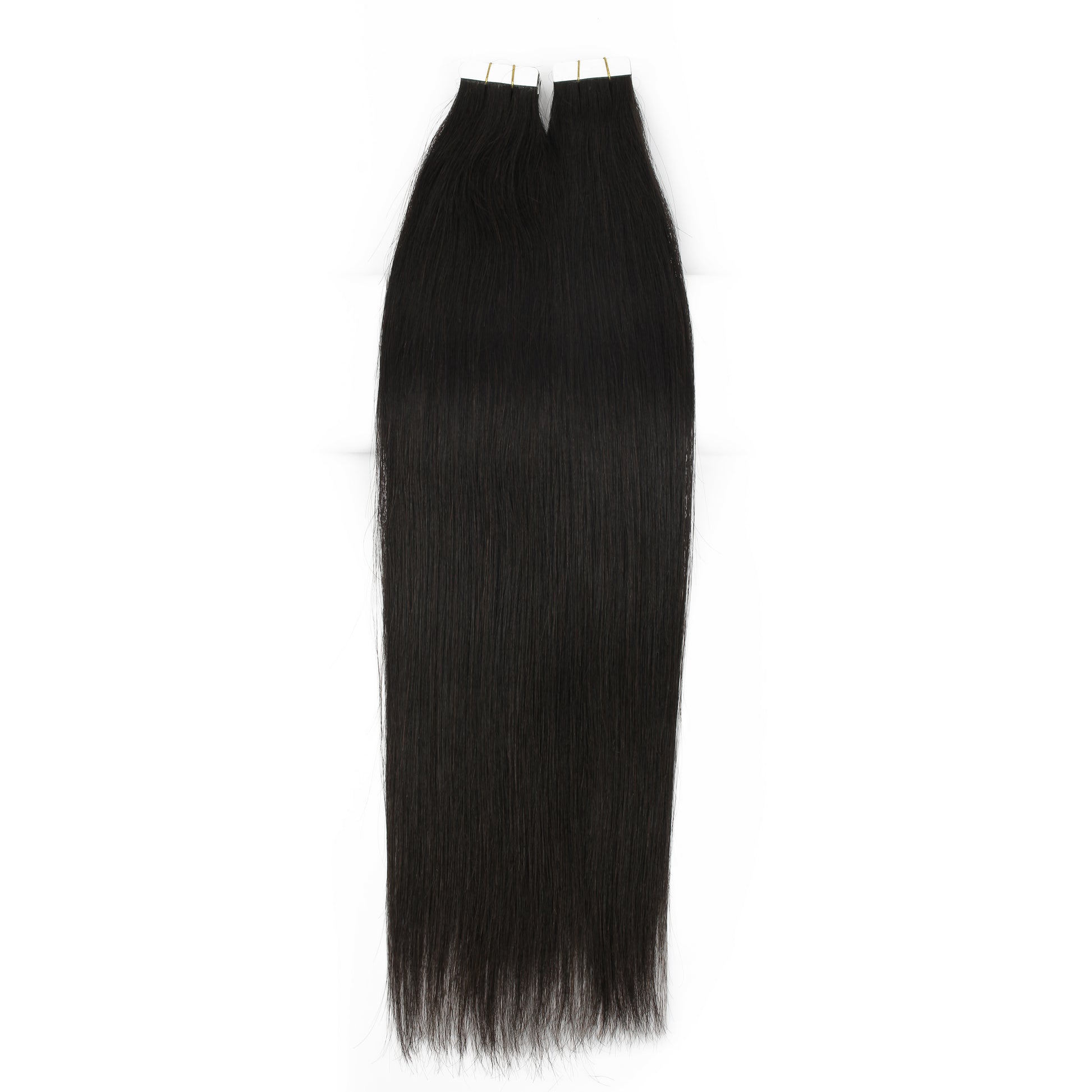 Extensions de cheveux à bandes adhésives noires naturelles n° 1B – 100 % cheveux humains Remy | Paquet de 50 g | 25,4 à 76,2 cm | Réutilisables | Expédié depuis le Canada