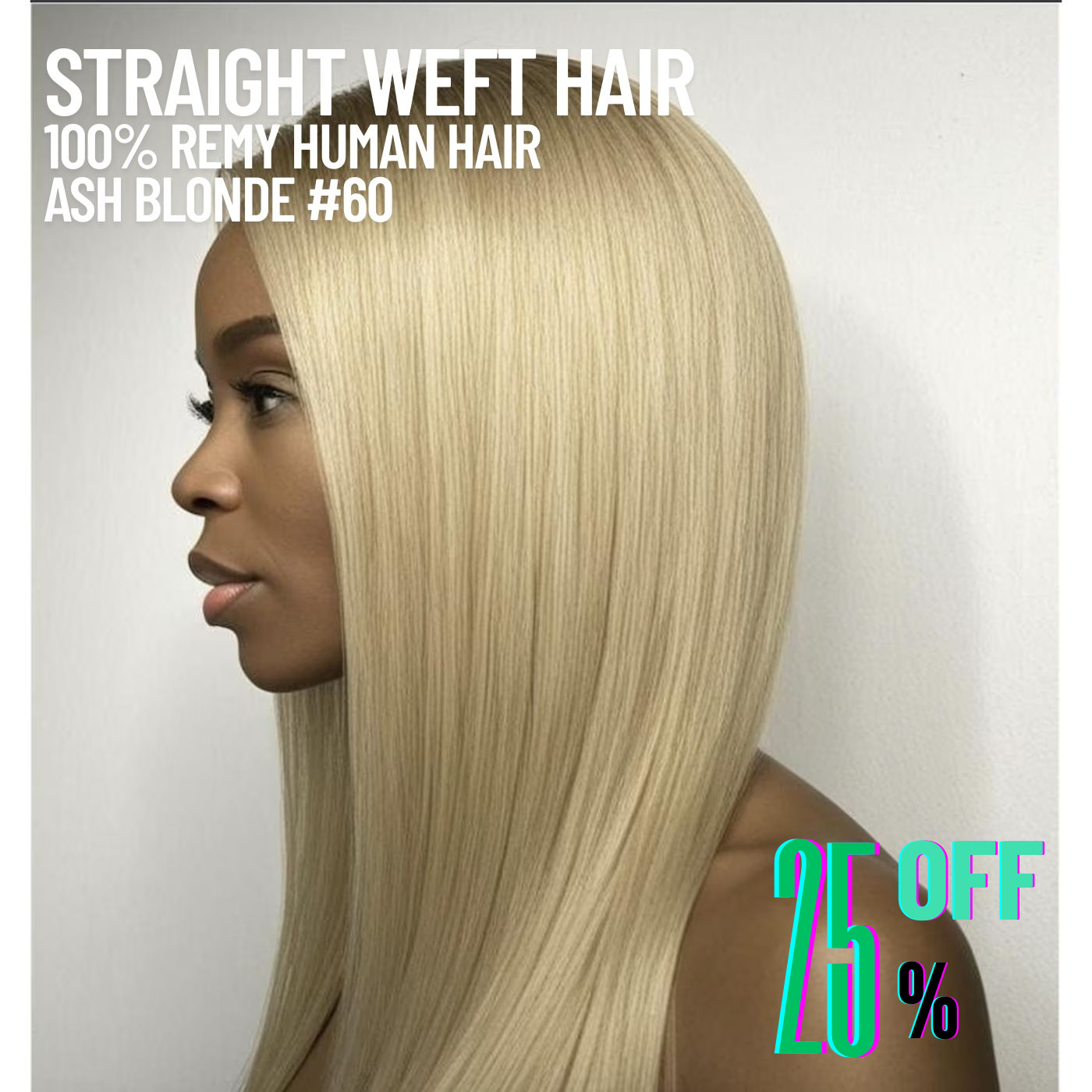 Ash Blonde #60 Weft Hair Extensions – 100% Remy Human Hair, soft, sleek, and versatile. Our #60 Straight Weft extensions are perfect for sew-in or DIY clip-in styles, blending naturally with your own hair for a fuller, longer look.