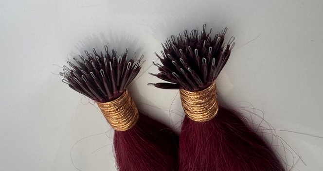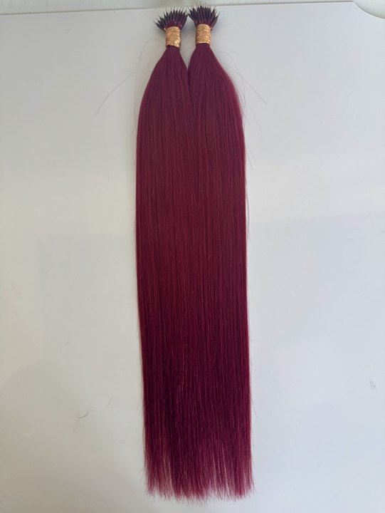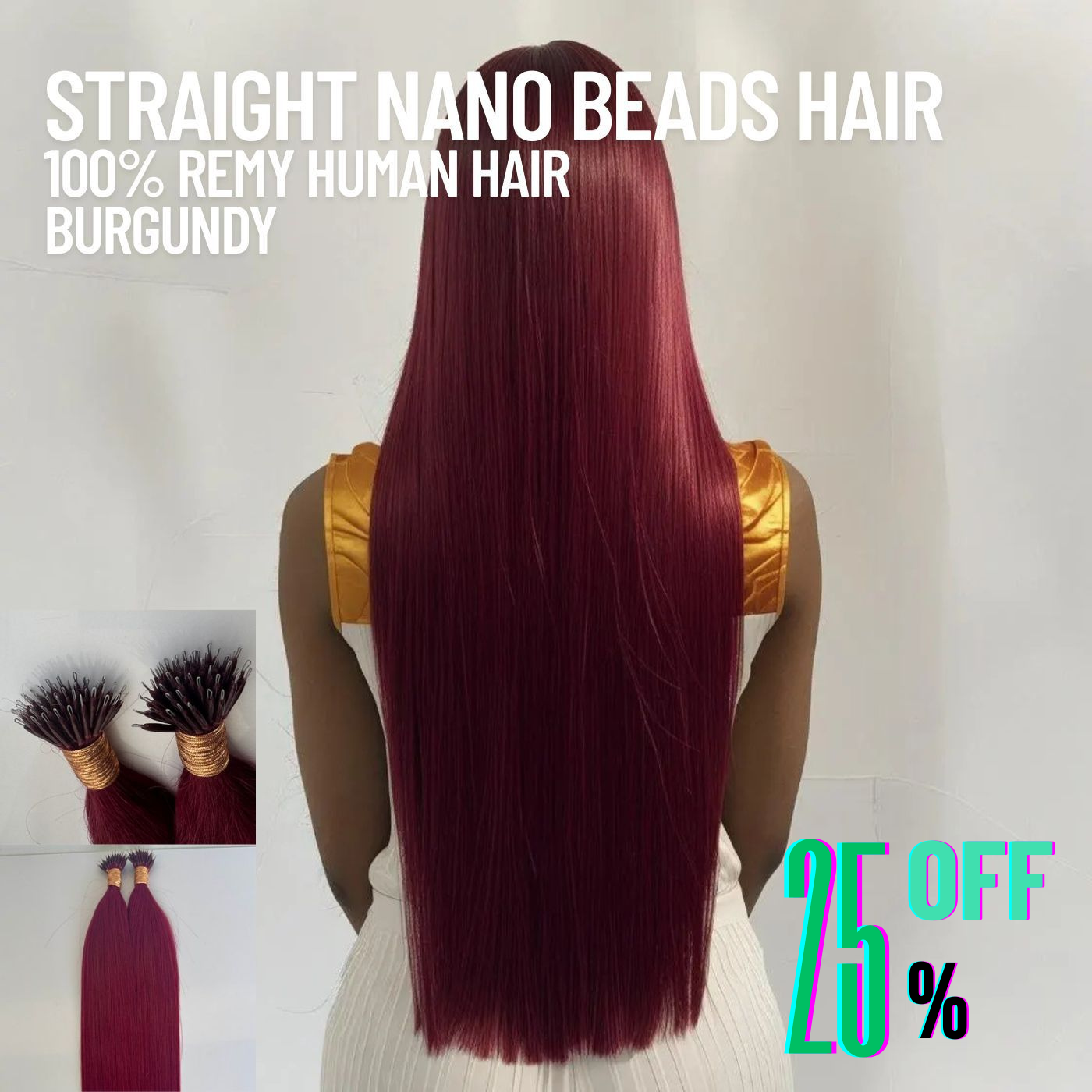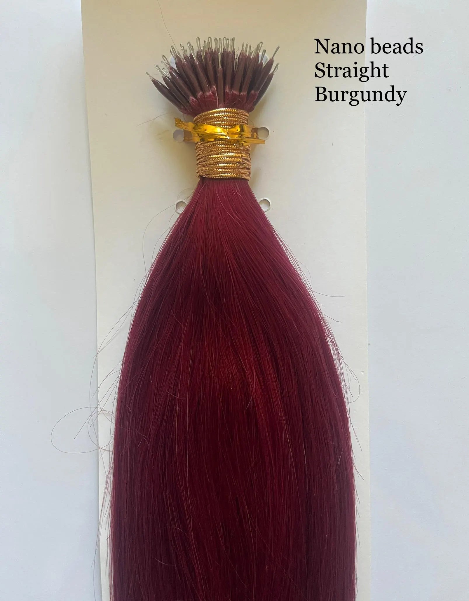 Burgundy Nano Beads Hair Extensions – 100% Remy Human Hair