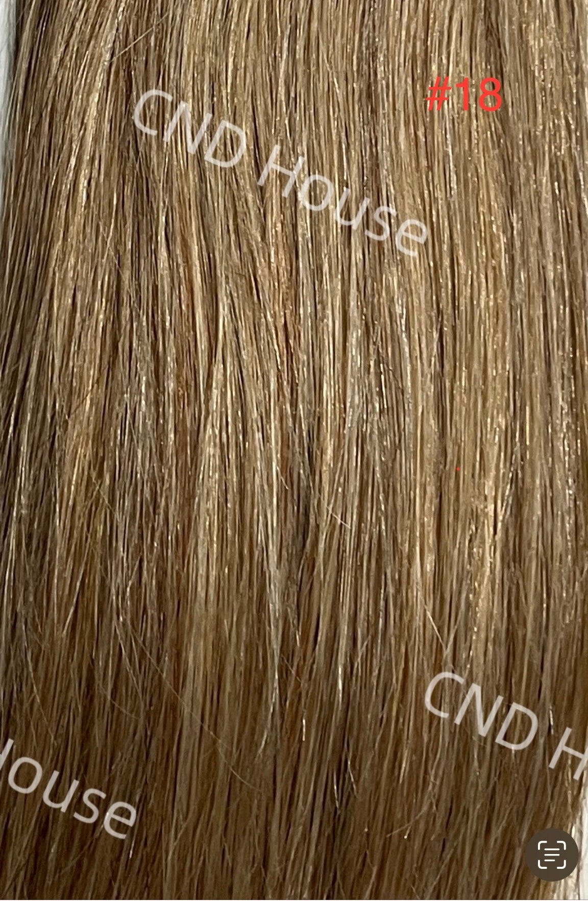 Dark Blonde #18 Tape-In Hair Extensions – 100% Remy Human Hair, soft, sleek, and easy to install. Our #18 Straight Tape-In extensions blend seamlessly with natural hair for a full, voluminous look.