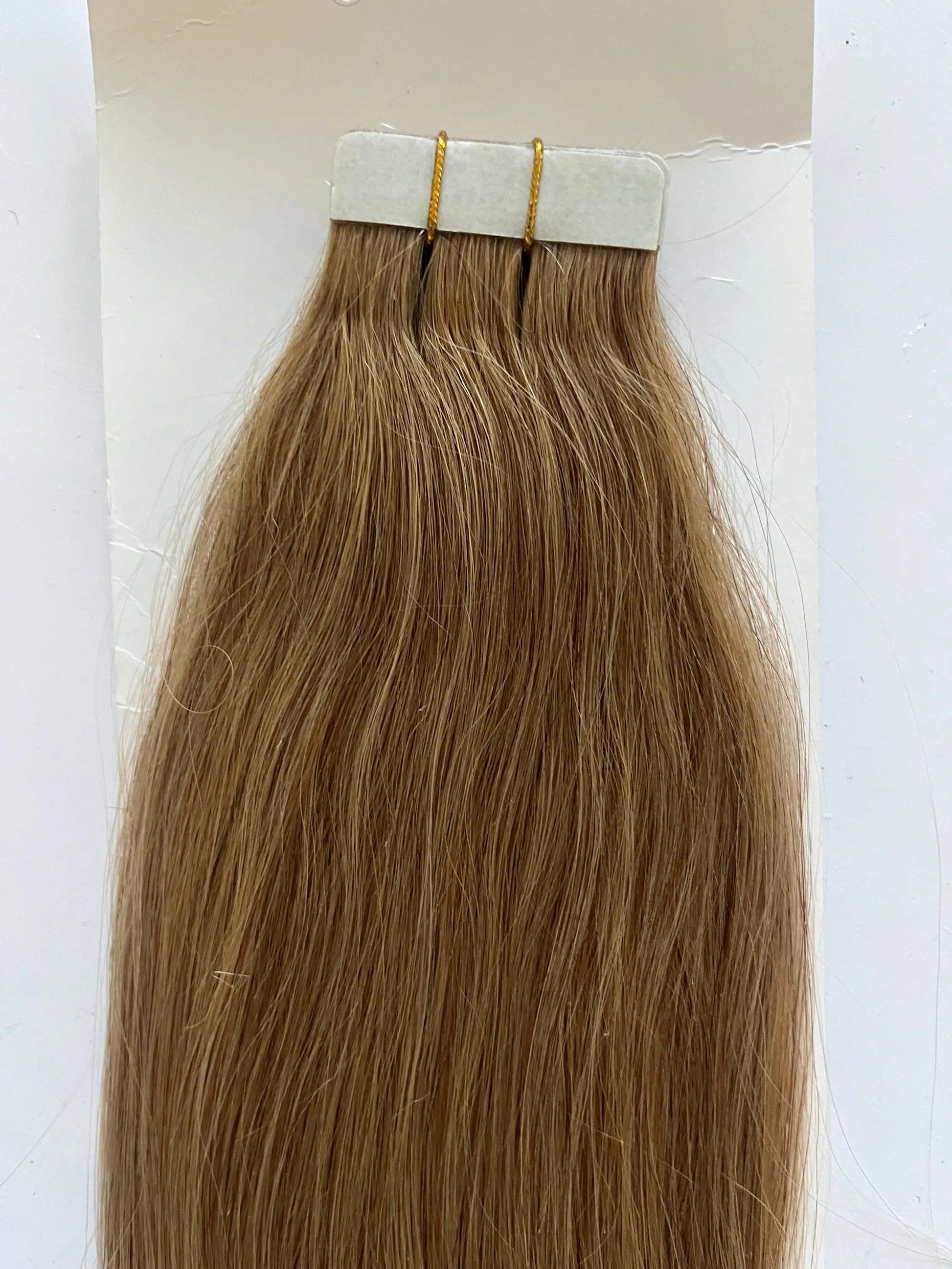 Dark Blonde #18 Straight Tape-In Hair Extensions – 100% Remy Human Hair | 50g Pack | 10''–30'' | Reusable | Ships from Canada