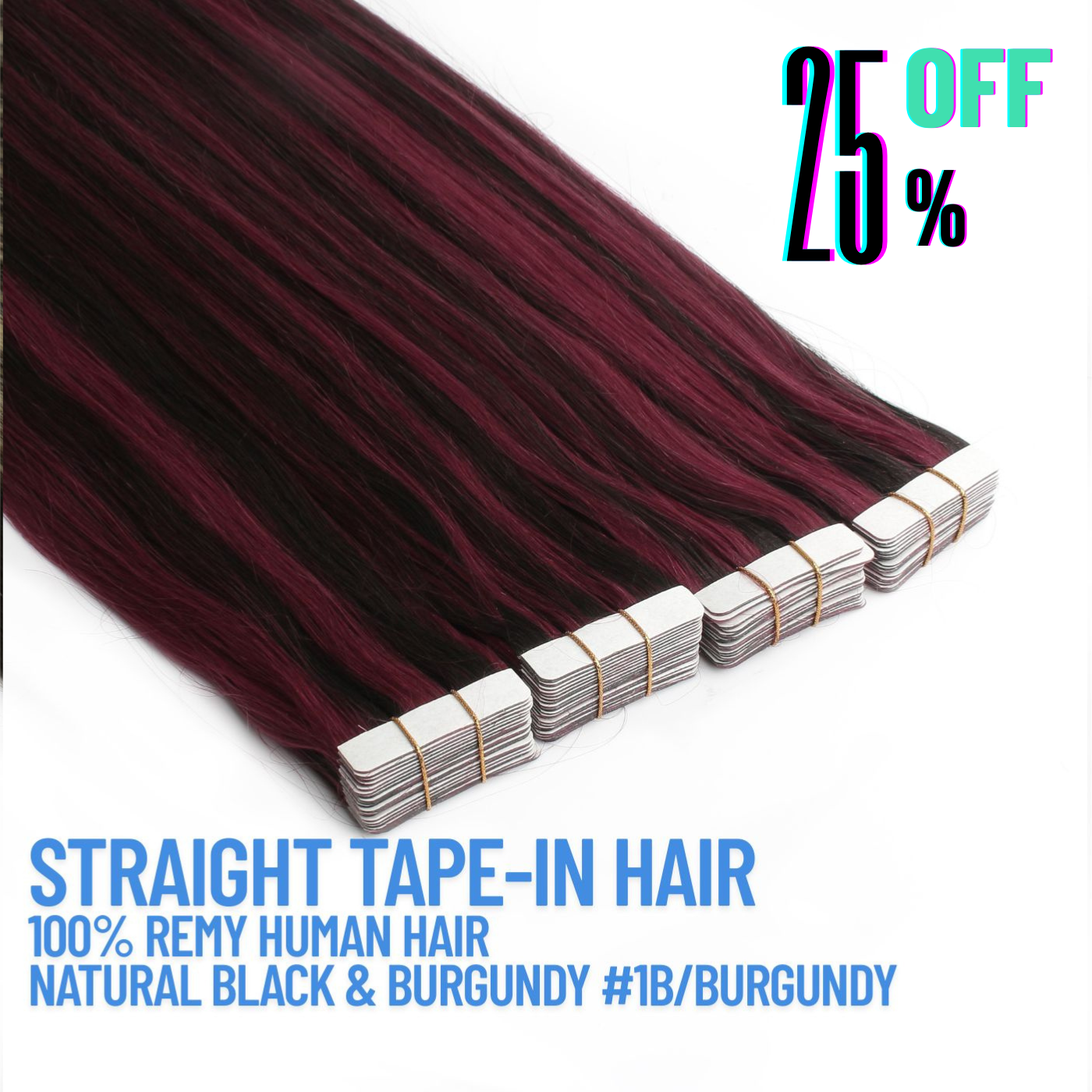 Natural Black & Burgundy #1B/Burgundy Tape-In Hair Extensions – 100% Remy Human Hair | 50g Pack | 10''–30'' | Reusable | Ships from Canada