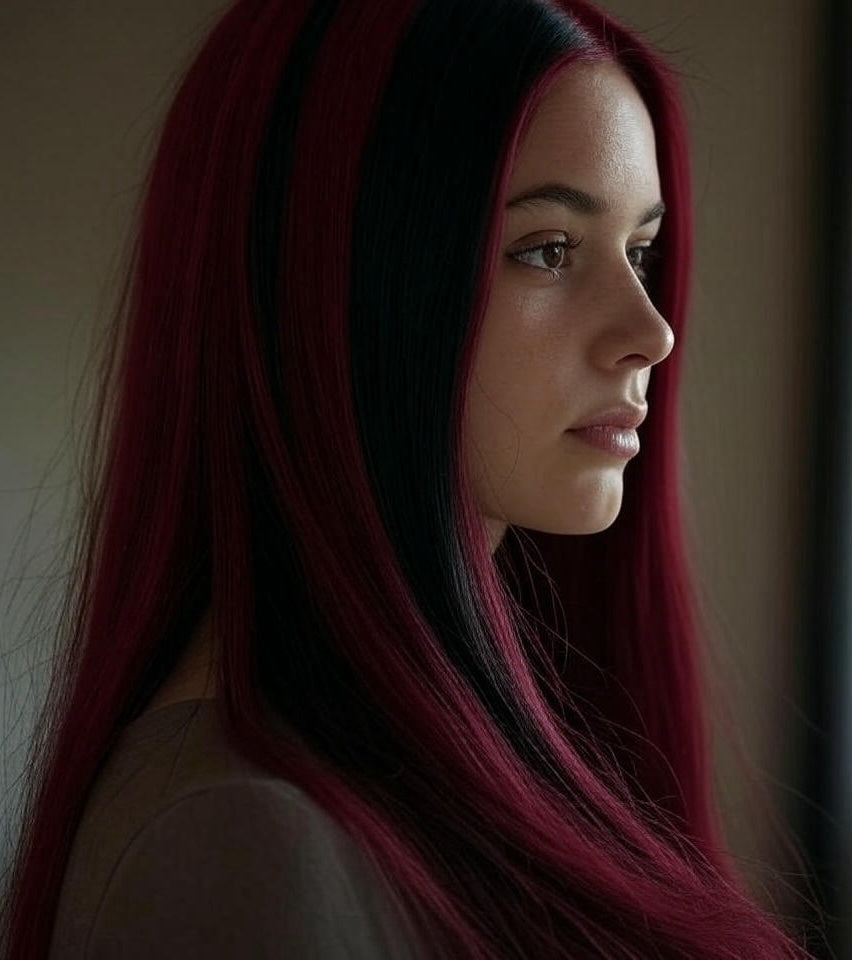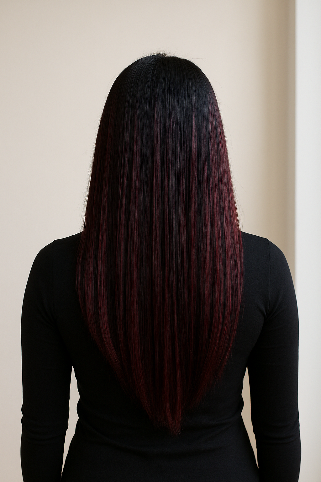 Deep natural black transitioning to vibrant burgundy — perfect for adding dimension and color without full-head dye. Great for fashionable styles and bold makeovers.