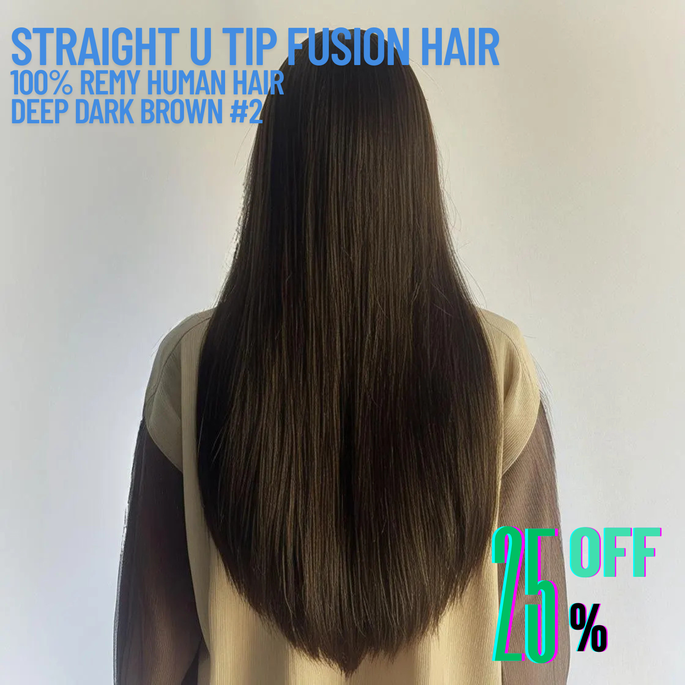Deep Dark Brown #2 U Tip Fusion Hair Extensions – 100% Remy Human Hair, soft, sleek, and long-lasting. Our #2 Straight U Tip extensions offer a secure, natural look that's ideal for salon-quality transformations.