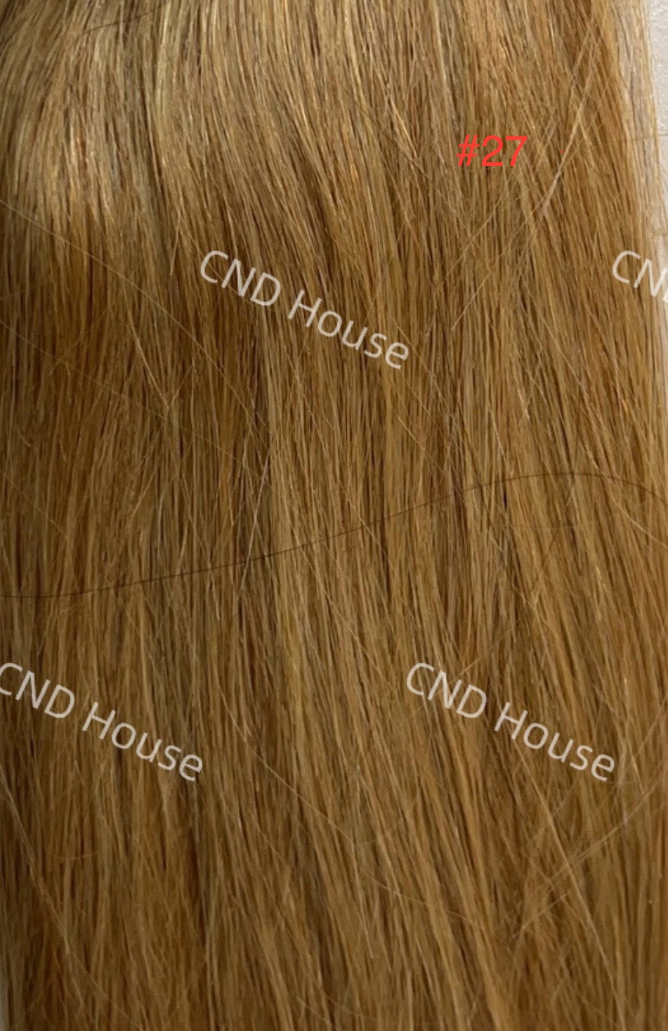 Honey Blonde #27 Tape-In Hair Extensions – 100% Remy Human Hair, soft, sleek, and easy to install. Our #27 Straight Tape-In extensions blend seamlessly with natural hair for a full, voluminous look.