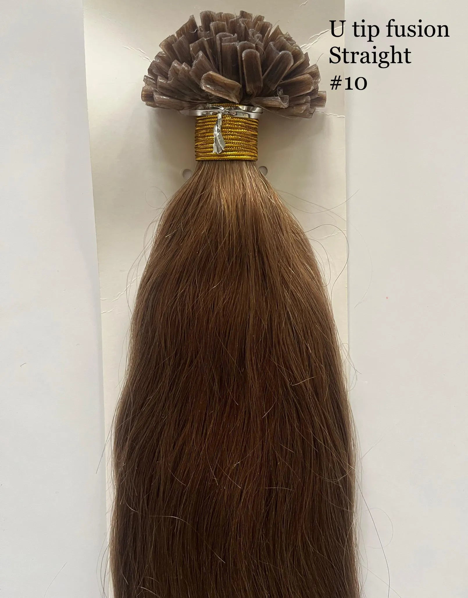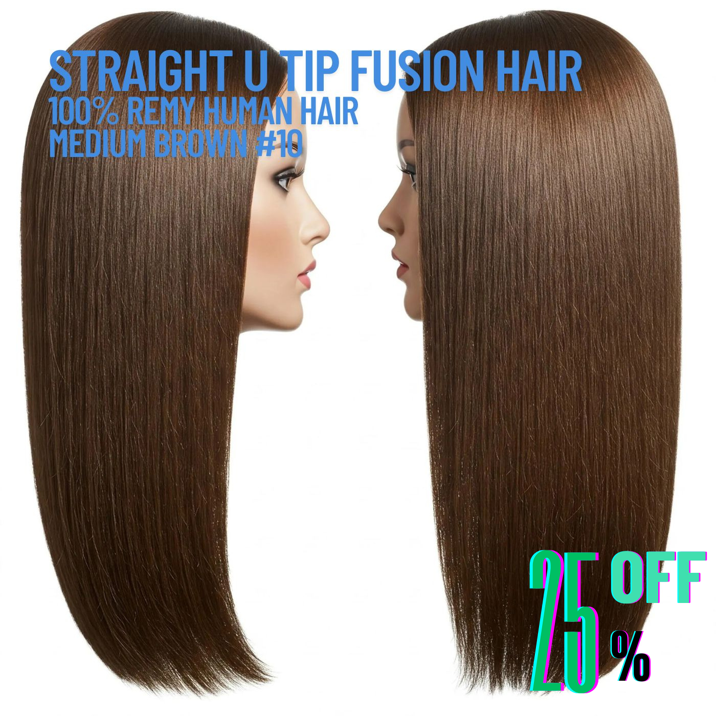 Medium Brown #10 U Tip Fusion Hair Extensions – 100% Remy Human Hair, soft, sleek, and long-lasting. Our #10 Straight U Tip extensions offer a secure, natural look that's ideal for salon-quality transformations.