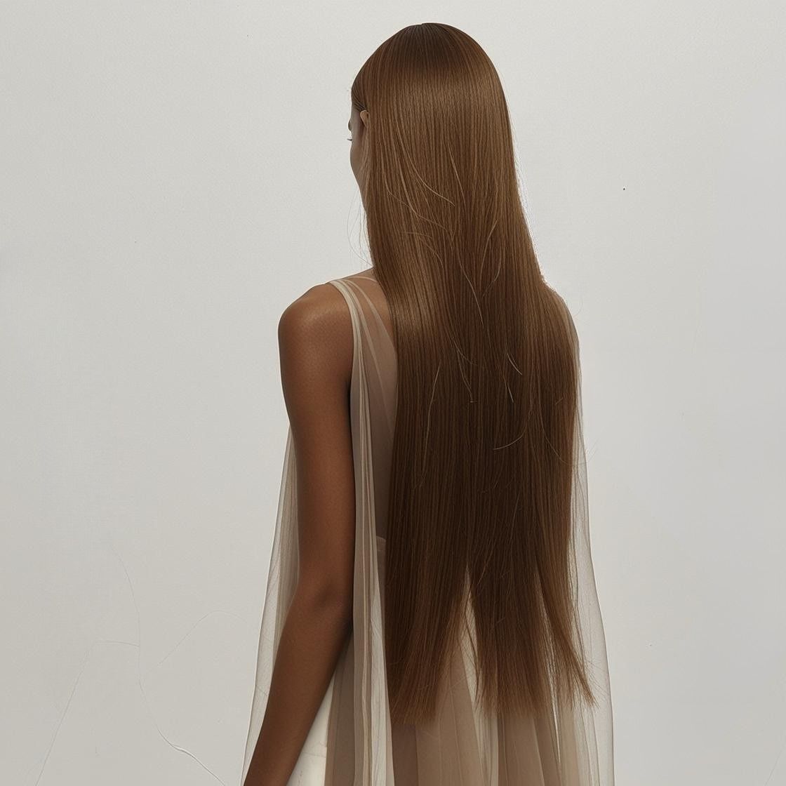 Soft medium brown with neutral ash undertones – great for a cool-toned, natural look that pairs well with lighter brown roots.
