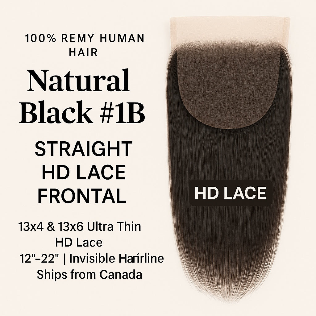 Natural Black #1B Straight HD Lace Frontal – 13x4 & 13x6 Ultra Thin HD Lace | 100% Remy Human Hair | 12''–22'' | Invisible Hairline | Ships from Canada